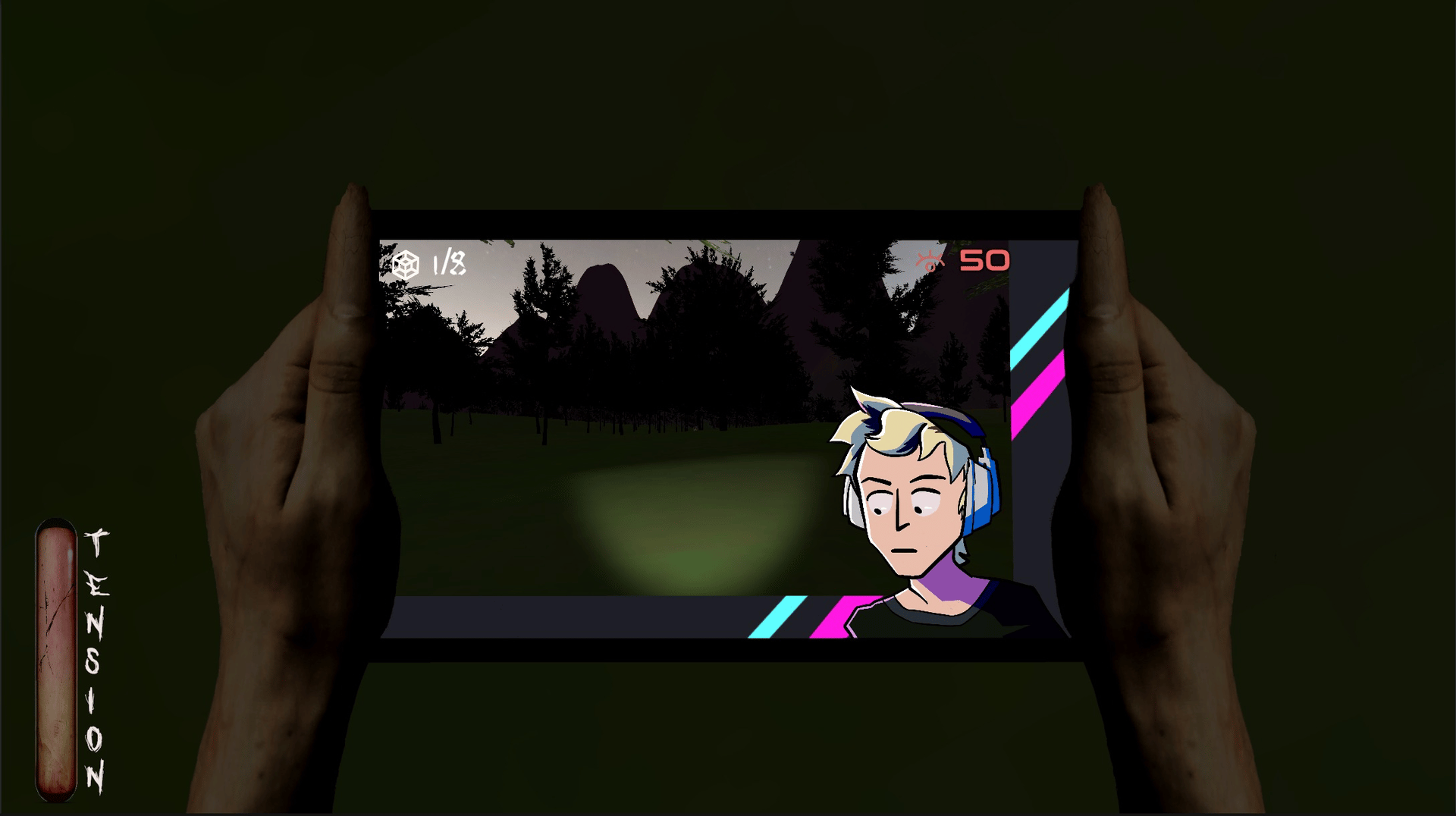 You are Flincher, antagonist of the hit new horror game Flincher's Forest that every streamer's been playing. Find where the streamer is by watching his stream, and build up tension to create big scares and earn viewers!