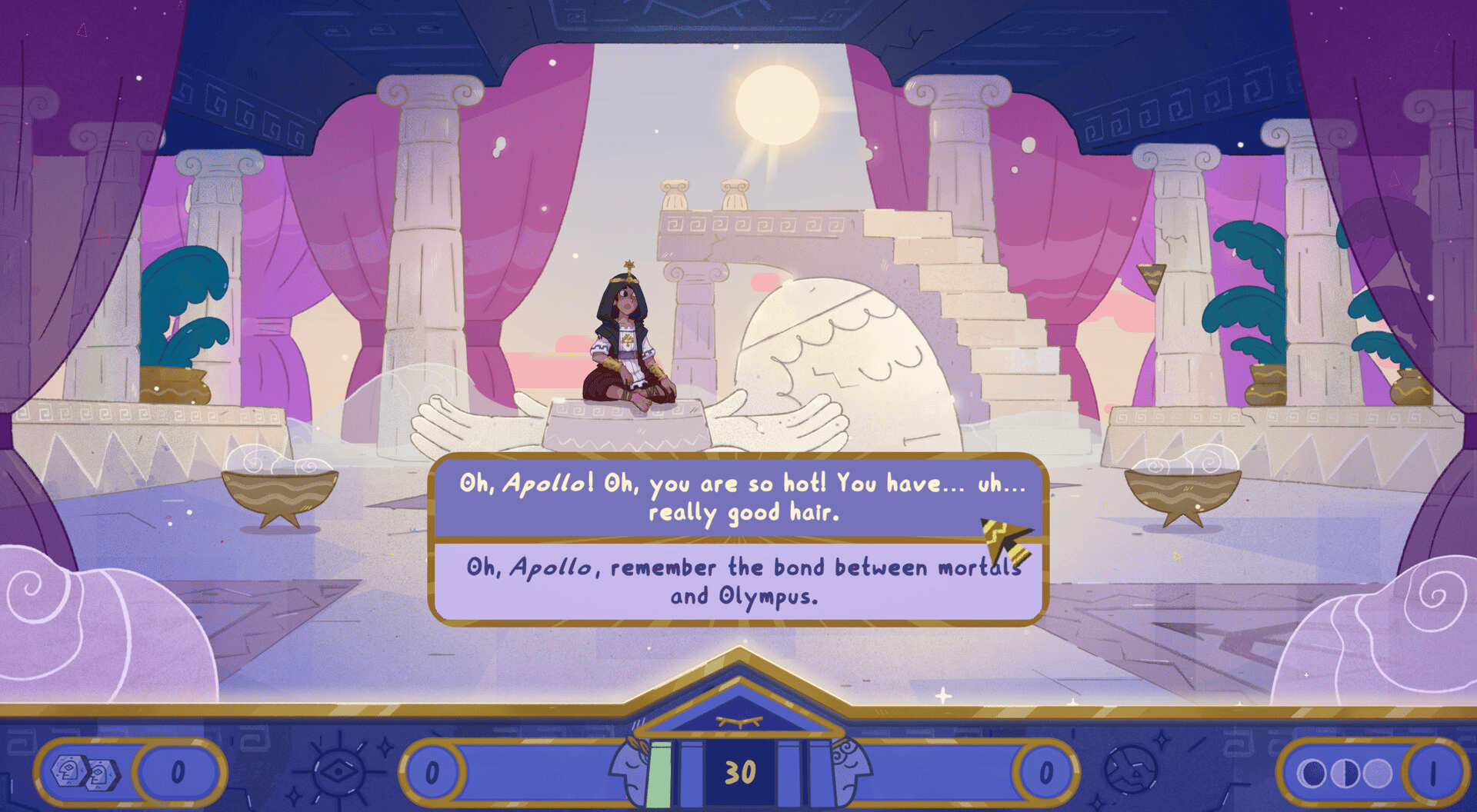 Fulfill your role as the priestess of Apollo's oracle in Delphi and bring the temple back to glory in this cozy narrative management game!