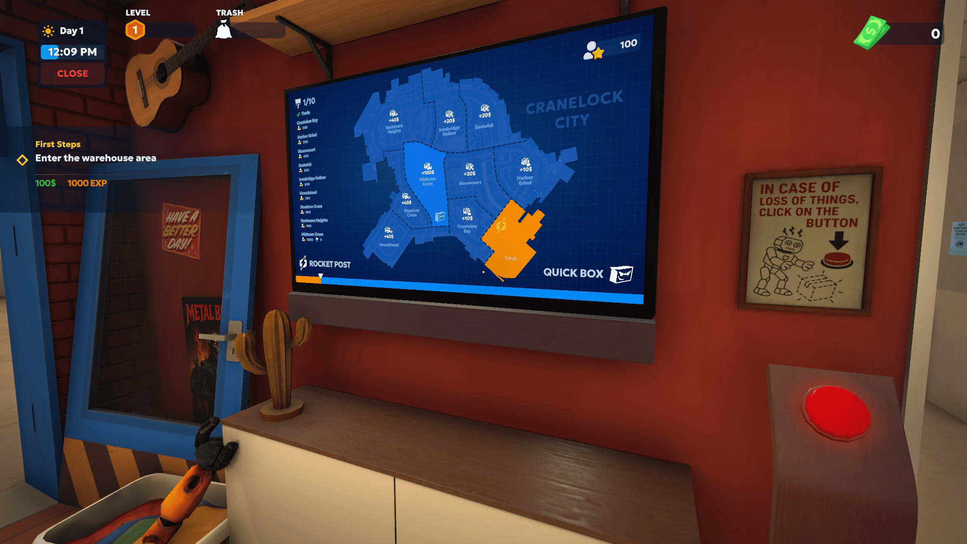 Run the logistics center of the future! Hire robots, deliver packages via drone, drop off urgent shipments in your truck, and become the biggest package pickup place in sunny Cranelock.