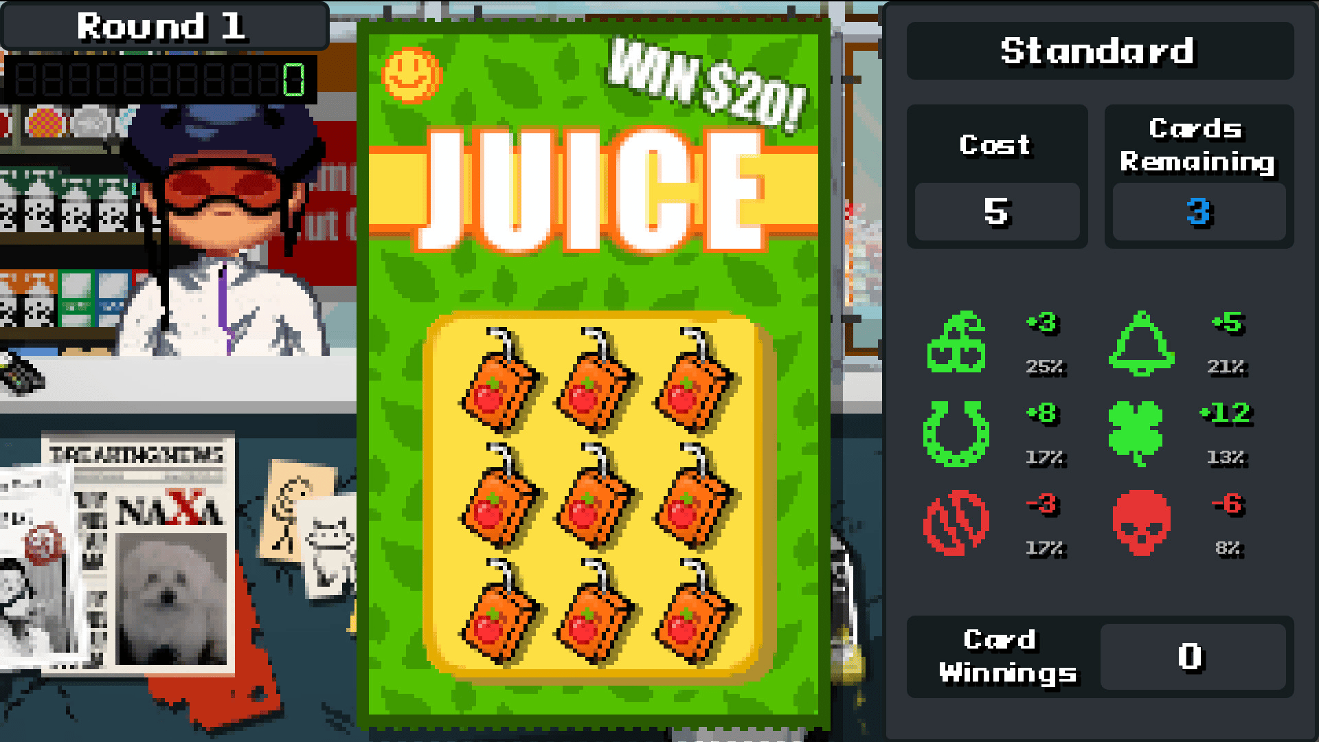 Scratch Off is a roguelike built around the simple, irresistible act of scratching a lottery ticket. Each run you are handed a stack of cards and a dwindling pile of money. Buy tickets. Scratch them. Survive the rent. Repeat.