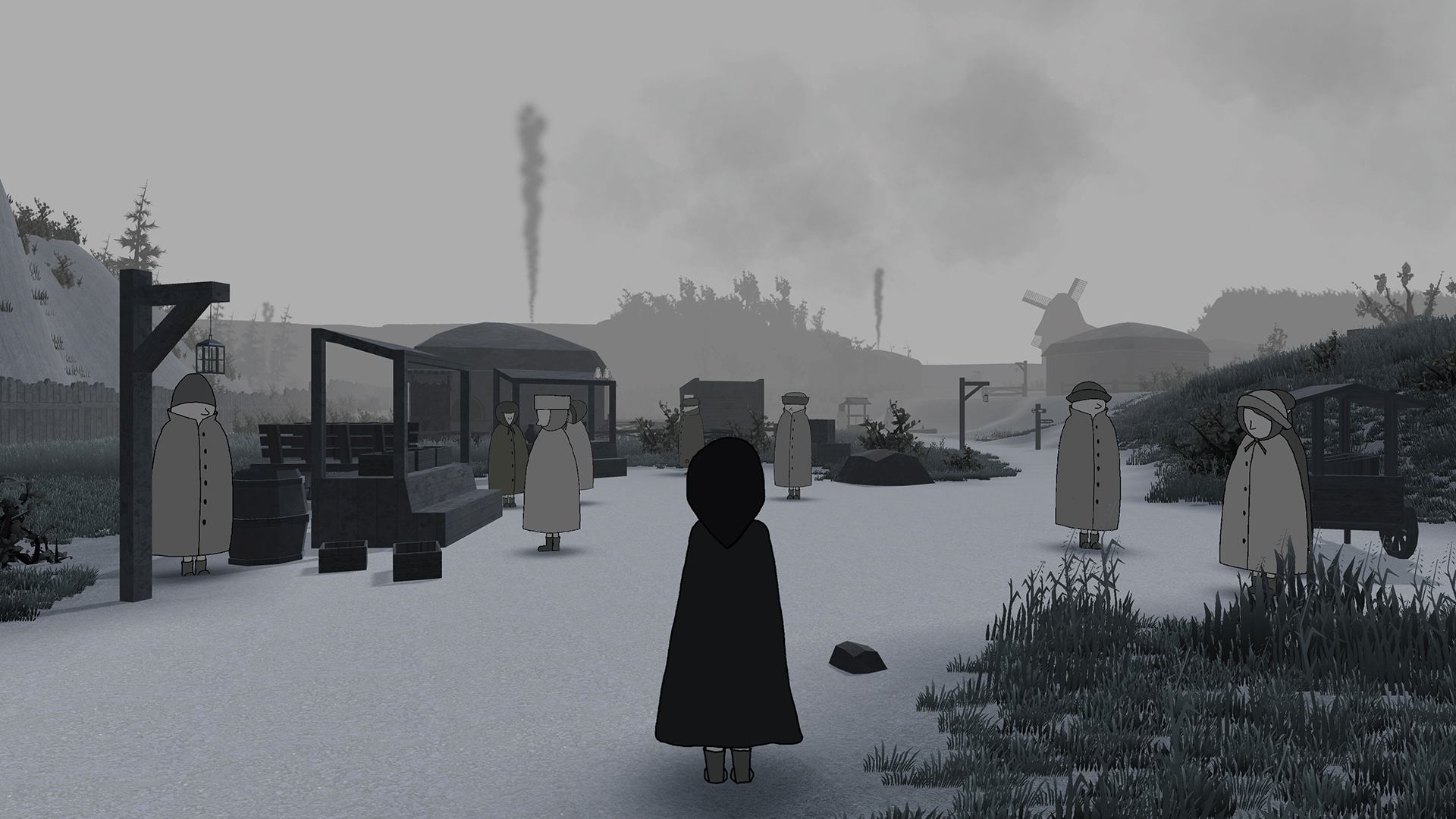 A story-driven adventure with a mystery atmosphere. Explore the settlement, gather clues, interact with its inhabitants, and uncover a conspiracy. Your actions shape your relationships with the locals—will they help you, or deceive you? Your choices will determine whether the protagonist can escape, or if his tragic fate will repeat itself again and again.