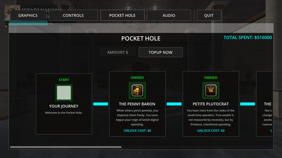 The ultimate honest cash grab. No gameplay, no buggy levels, just a pristine spinning diamond and a leaderboard to flex your wealth. Why play broken games filled with microtransactions when you can cut out the middleman and just win at spending money? Pure status. Zero utility.