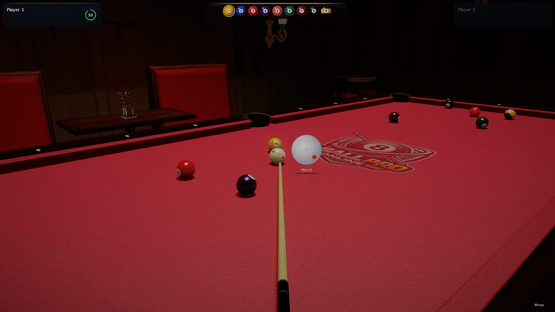 3D 8-ball pool game; featuring spin control, jump shots, and various game modes. Aim your shots, adjust the ball's position, and clear the table. Play against the computer, challenge a friend locally, or compete in online PvP.