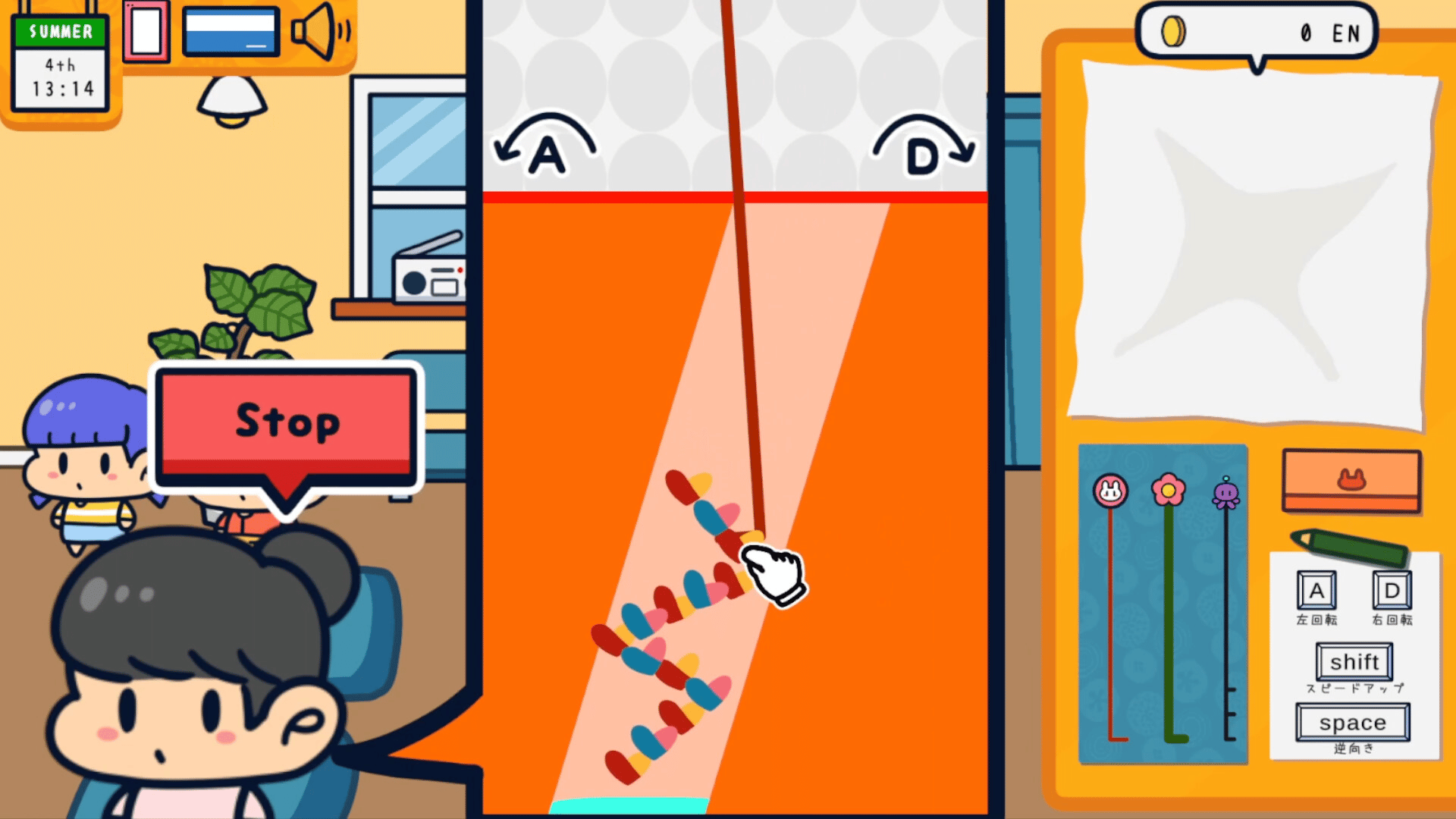 Operate an ear pick to clear "ear debris = mimigomi" from inside an ear. There are various types of debris, and removing them earns you money. Use your earnings to purchase new ear-cleaning tools and furniture. Decorate your own unique room with the furniture you acquire.