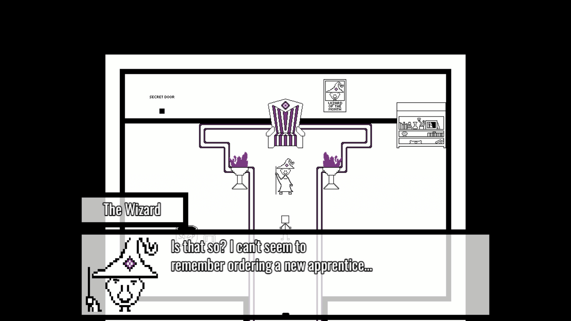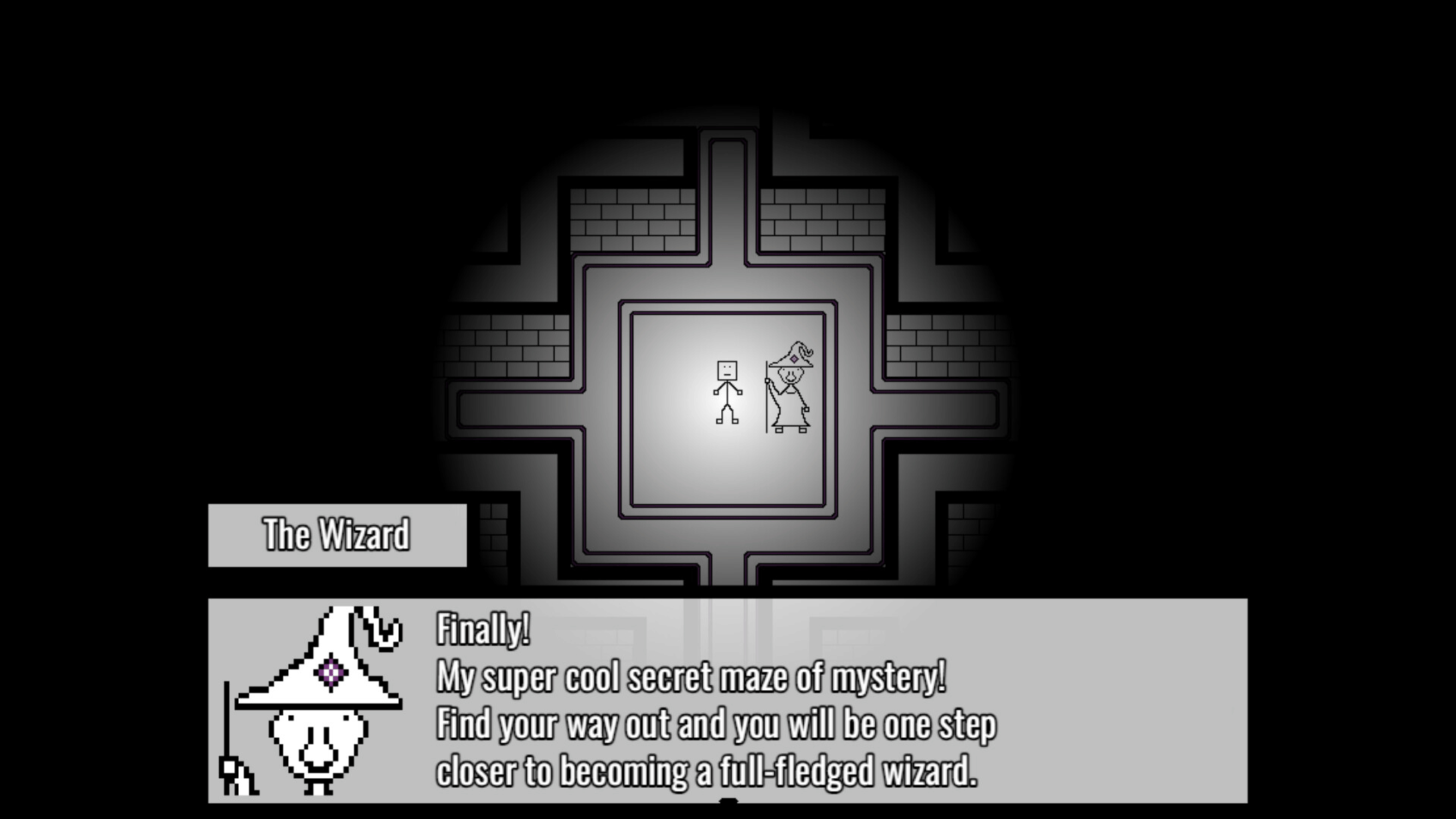 Blockboy and The Wizard is a short linear game about a regular stickman with a square head and a bleak life, who becomes the apprentice of a wizard with no beard and his own brand of soda. The soda thing isn't really important at all, but it's very cool. Click stuff and things happen!