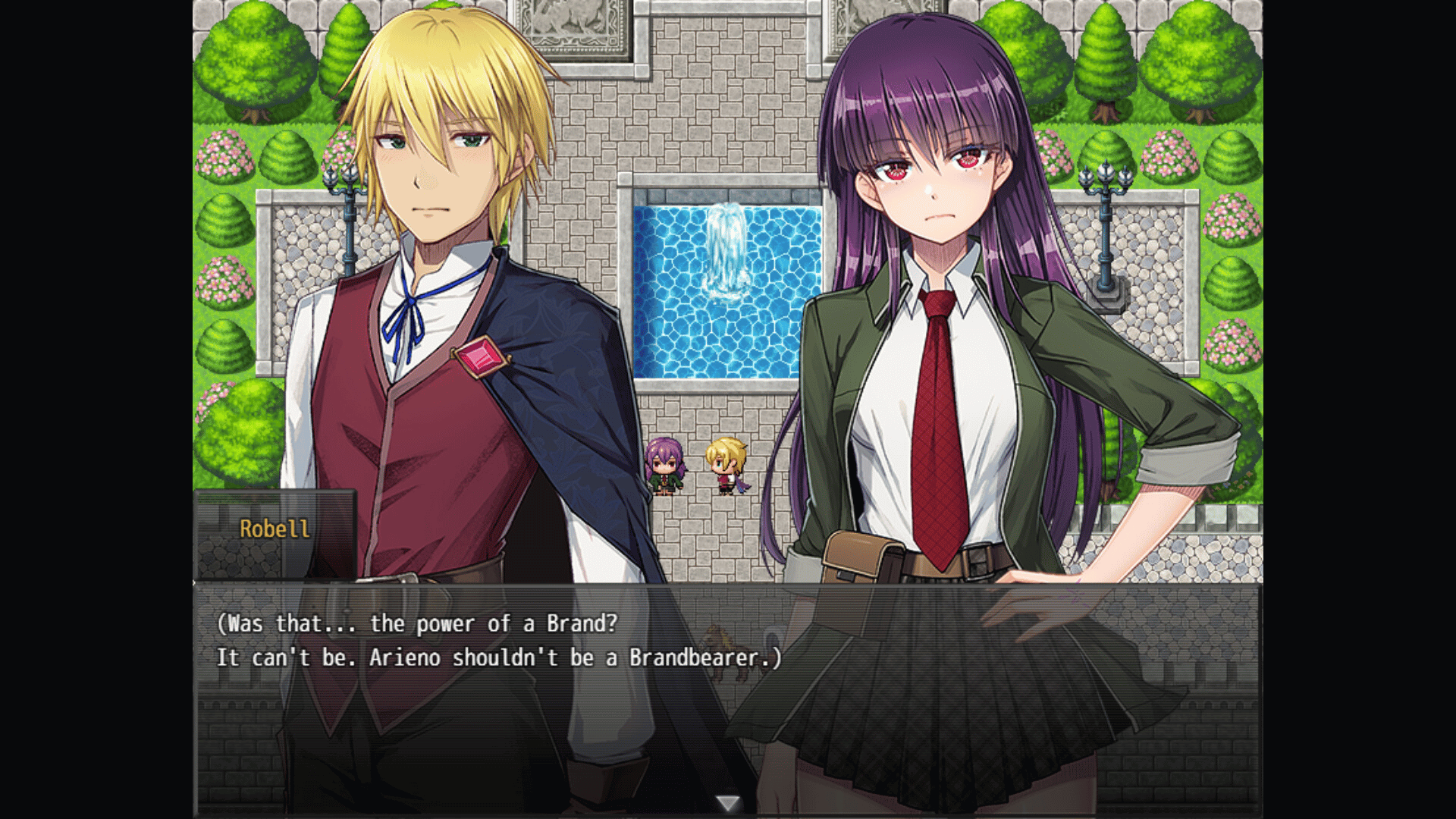 Retro-style Turn-Based JRPG. In this world, certain humans possess "brands" on their bodies. These are usually hereditary, passed from parent to child. Humans who possess the brands usually have special powers that resemble magic....